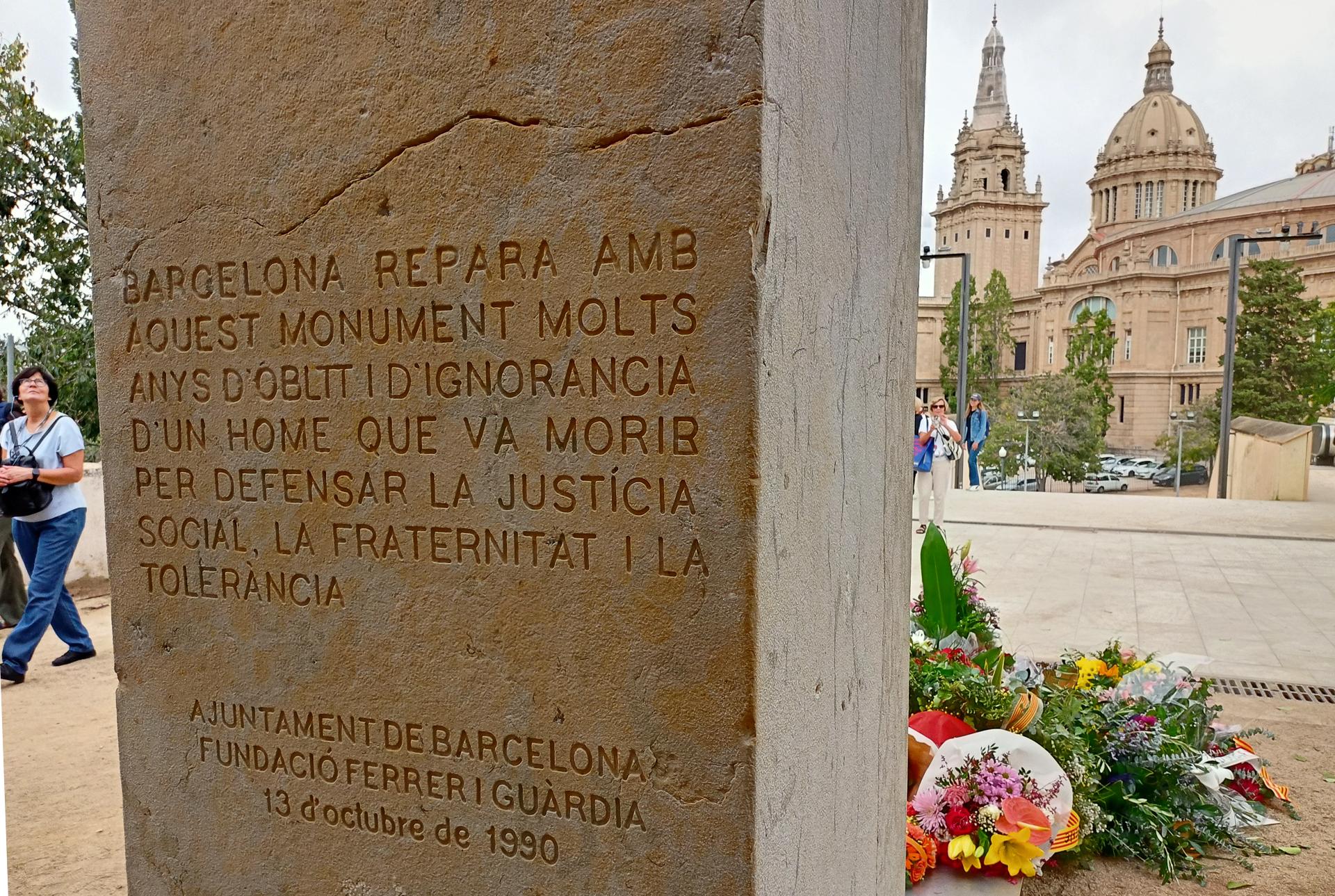 Hoy se ha conmemorado el 115º aniversario del fusilamiento del catalán Francisco Ferrer Guardia con la tradicional ofrenda floral ante el monumento dedicado al pedagogo en la montaña de Montjuïc.