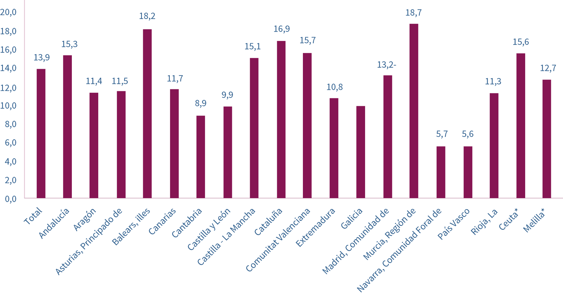 (*) Les dades de Ceuta i Melilla tenen baixa fiabilitat.