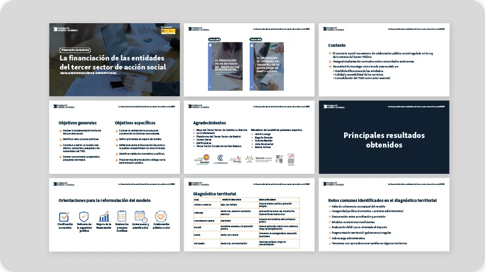 Investigació impulsada per la Fundació Ferrer i Guàrdia que analitza l'estat del finançament de les entitats del Tercer Sector a Espanya i proposa estratègies per garantir la sostenibilitat i el creixement. A través de grups focals amb entitats d' arreu del territori i amb l' acompanyament d' un comitè d' expertesa, l'estudi identifica reptes, bones pràctiques i recomanacions útils per al sector i les administracions públiques. En cada edició, s'aprofundeix en aspectes clau com la diversificació de les fonts de finançament i el concert social.